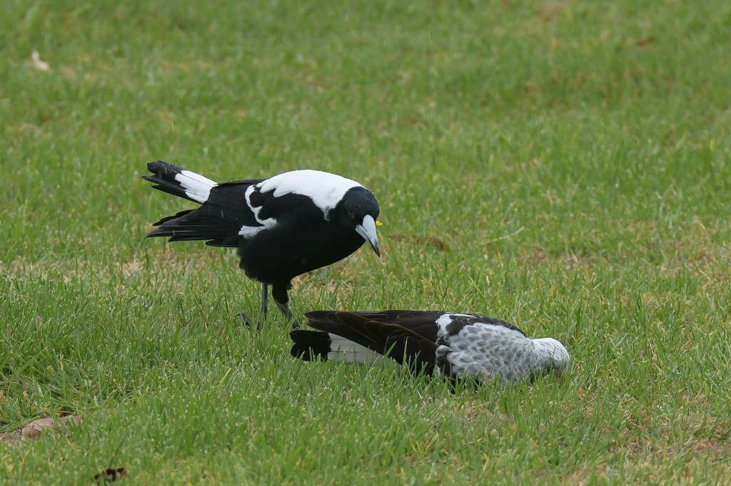 Named Magpie for its similar black and white patterning to the Eurasian magpie. The 2 species are nothing alike and not related. The Eurasian Magpie belongs to the crow family Corvidae, while the Australian Magpie is in the family Artamidae, which includes butcherbirds and currawongs. Their behaviours, diets, and nesting habits are completely different.