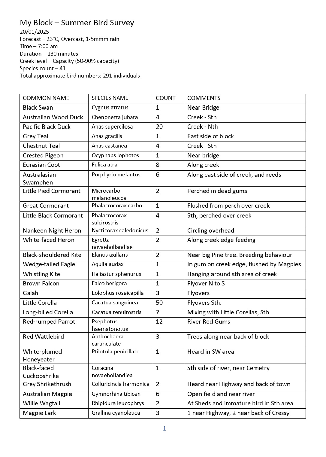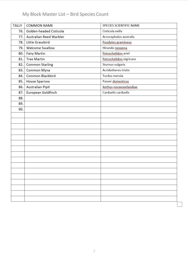 Determine the bird species on your property. The information gathered is useful for conservation efforts, government grants, and avifauna awareness.