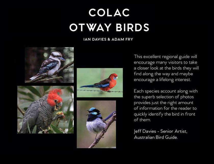 In 2019, good friend Ian Davies and I published local field guide, Colac Otway Birds. Aimed at novice and visitor bird enthusiasts and anyone interested in the birds of our area. Filled with coloured photos of 226 species, where you might find each one, a little about them and their rarity status in our area.