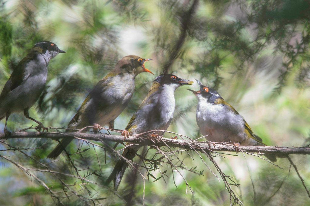 White-naped Honeyeater – Great to see some young White-naped Honeyeaters doing well here. This bush bird has found a nice place in town.