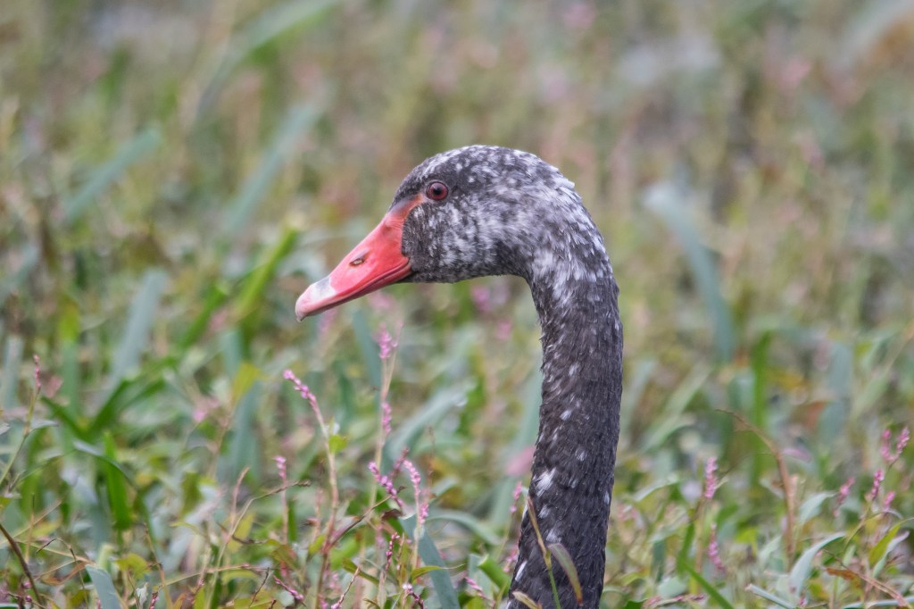 Black Swan: I grew fond of this particular female swan at the sanctuary over a couple of seasons around 2018. Quite recognisable with her leucistic features. Leucism is the lack of melanin pigment in some feathers due to the absence of melanin-producing cells. Albinism is the complete lack of these pigments due to the absence of a particular enzyme (tyrosinase).