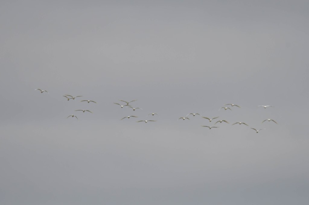 Cattle Egret: This is a flock coming in to roost for the night. The flocks can get up to 400 here, which is a lot for this species.